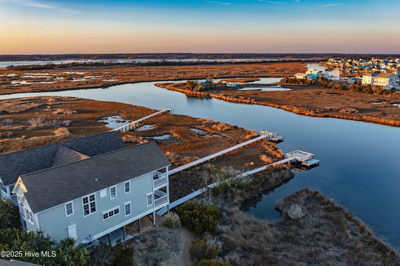This sound-side waterfront townhome presents an exceptional opportunity to own a well-positioned coastal property with expansive water views and private dock access.This 4-bedroom, 4-bathroom home offers 2,656 square feet of open living space, thoughtfully designed to capture natural light and maximize stunning views from nearly every room and multiple outdoor decks. The private dock with spacious sun deck provides an ideal setting for enjoying sunsets, relaxing by the water, or entertaining.Interior features include 9-foot ceilings, wood flooring, a gas fireplace, and custom built-in cabinetry. The kitchen is equipped with granite countertops, bar seating, stainless steel appliances, pantry, and opens seamlessly into the main living and dining areas.The 2nd level primary suite features extensive water views, private balcony access, a walk-in closet, and recently updated bathroom with a soaking tub, tiled shower, and dual vanity. The 2 additional upstairs bedrooms offers access to their own en-suite bathroom, and the first-floor bedroom/office provides added flexibility.Additional features include custom electric hurricane shutters, an outdoor shower, and access to a waterfront community pool and clubhouse with incredible water views. Located in a cul-de-sac setting and convenient to public beach access, dining, and shopping.No short-term rentals permitted.